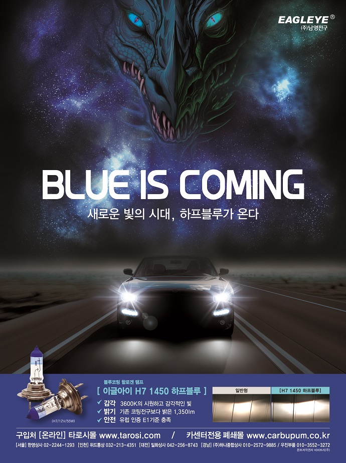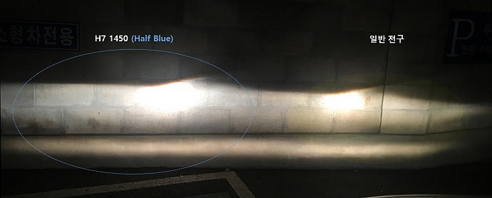 'H7 1450 Half Blue'는 블루 코팅을 절반만 입혀 3600K의 세련된